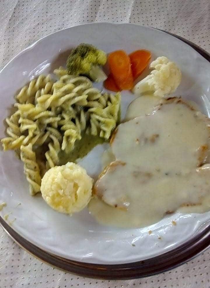 Lomo de cerdo cubierta en salsa bechamel.